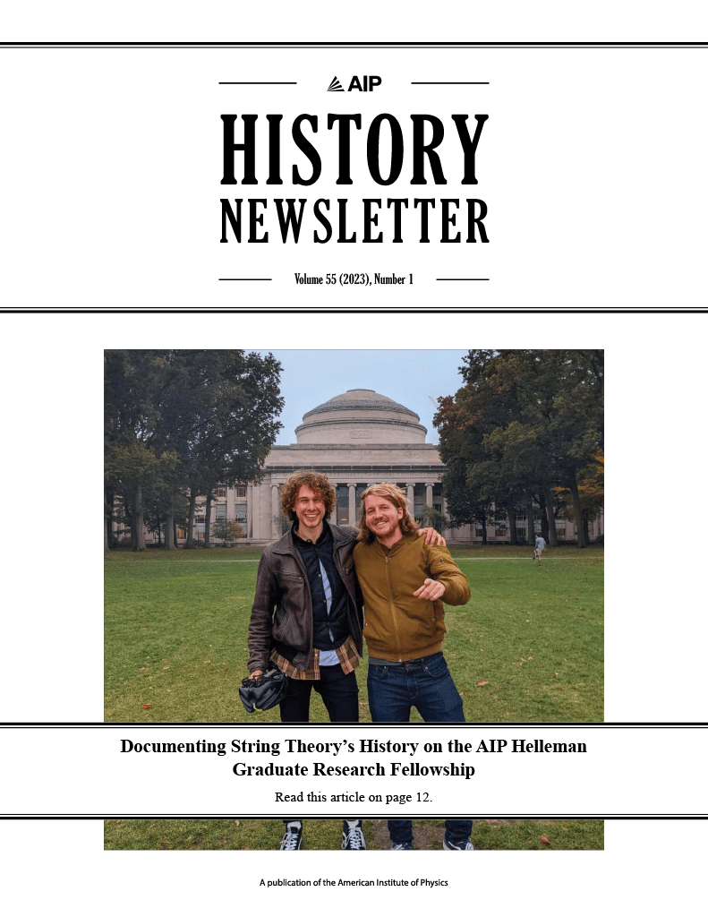 - “Inaugural Helleman Fellows Selected.” American Institute of Physics History Newsletter 53, no. 2 (Fall 2021), 24-25. https://www.aip.org/sites/default/files/history/files/newsletter-pdf/v53n2_2021-digital-singles.pdf
